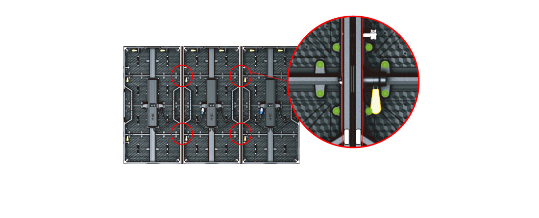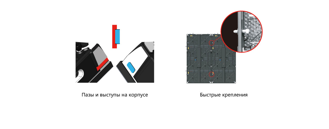 Крепления для быстрого монтажа позволят собрать экран невероятно быстро, а специальные шипы и пазы на кабинете гарантируют правильное положение кабинета
