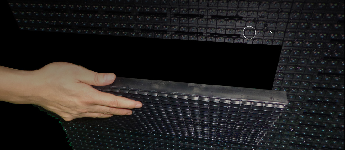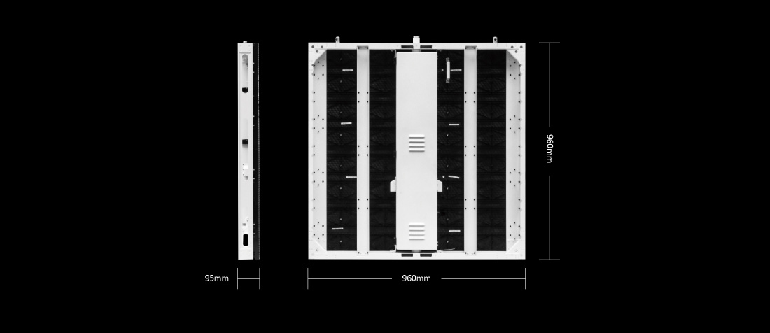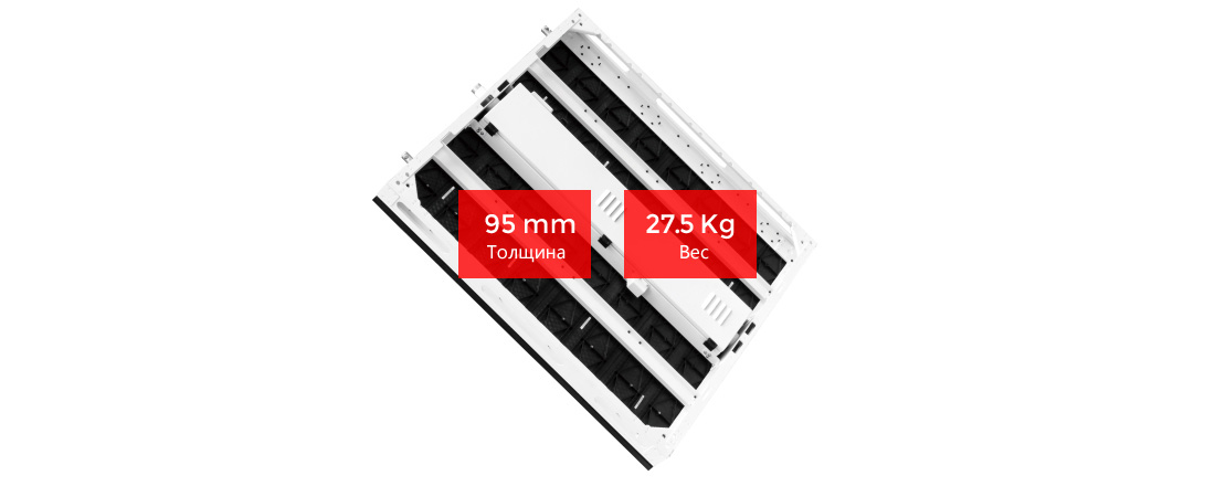 Полый дизайн кабинета, улучшает способность охлаждения корпуса экрана, высокая светопропускаемость, снижает сопротивление ветра.