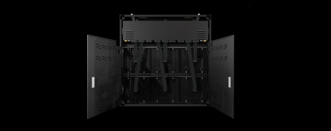 Модули, блок питания, контрольные карты могут обслуживаться с фронтальной или тыльной стороны.