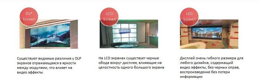 Когда-то эталоном оборудования телевизионных студий считались видеостены из жидкокристаллических экранов. В свое время это был действительно огромный прорыв, но уже тогда можно было найти недостатки: широкие швы между LCD-панелями, низкая контрастность изображения, несоответствие насыщенности картинки, неравномерность экрана и прочее. Правда, на эти недостатки закрывали глаза за неимением лучшего.