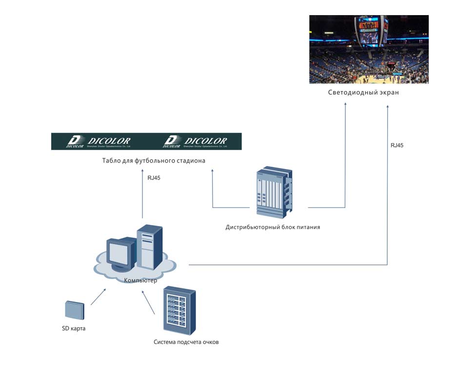 Решения всей распределительной системы, системы обработки изображения и звука, системы управления, светодиодный экран и периферийные устройства, каждое решение конфигурации системы осуществляется в соответствии с требованиями различных клиентов, следующее описание системы представлено только справочно.